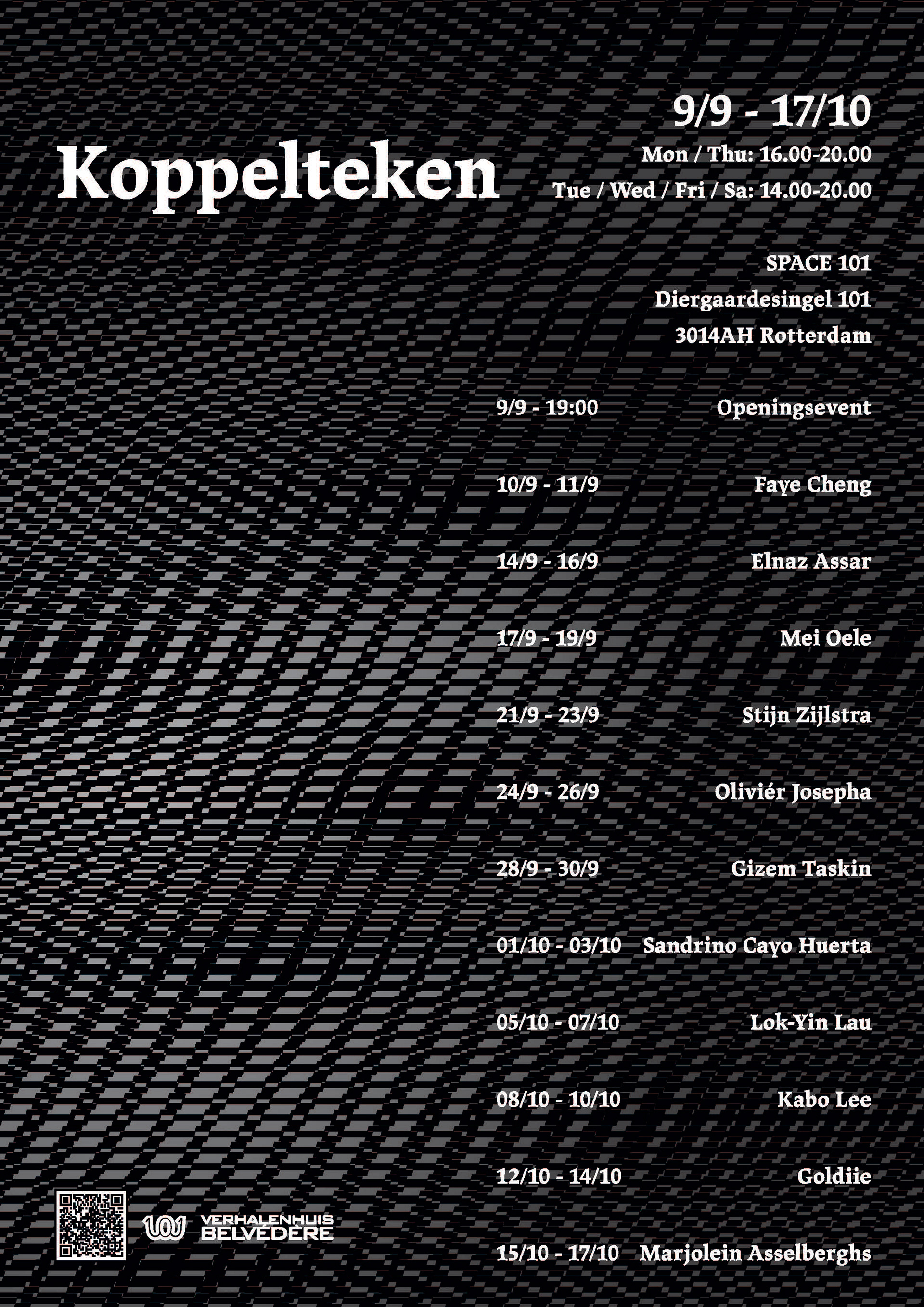 ‘Koppelteken’ is a multidisciplinary exhibition. ‘Koppelteken’ or in English the dash refers to our cultural identity and the artists exhibiting their work are from a diverse cultural background. We don’t belong to one specific group and this dash determines how we navigate through the Dutch society. No one can clothe themselves with a different identity, thus no one can truly experience what it means to live in the realm of the dash. All artists within this exhibition will share their own personal stories and experiences. Our goal is to make the public aware that one’s cultural identity does not define them, yet is a part of them as individuals.